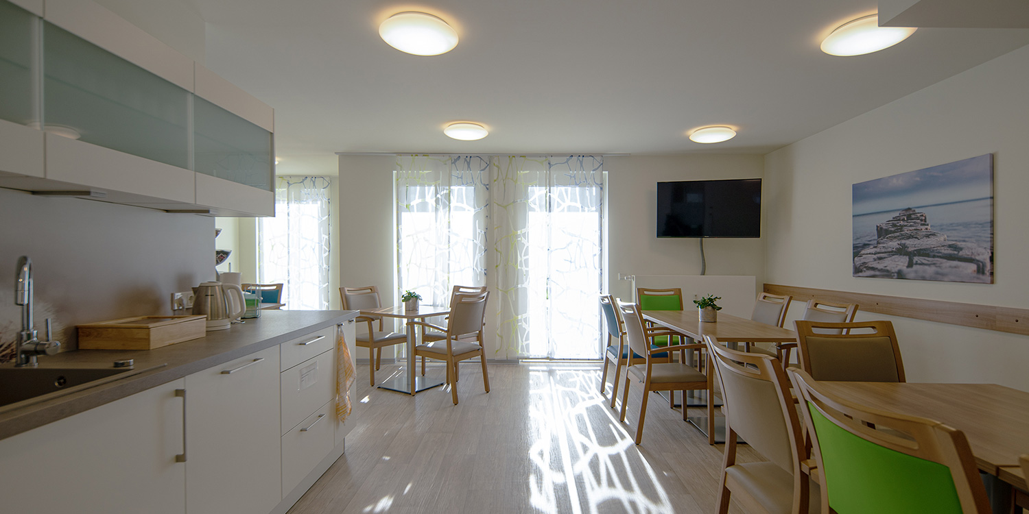Sie leben in den eigenen 4 Wänden, die Sie selbstverständlich individuell gestalten können. Zur Mietwohnung gehört ein Gemeinschaftsraum, der liebevoll mit einer vollausgestatteten Küche, Sitzgelegenheiten und einem Fernseher ausgestattet ist. Der Raum wird regelmäßig von den Mietern für gemütliche Kaffeestunden, gemeinsame Spielnachmittage oder sonstige Veranstaltungen, gemeinsame Feste aber auch für private Zwecke genutzt. In unserem neuen und liebevoll gestalteten Mehrzweckraum können Sie sich sportlich betätigen oder an anderen Kursen teilnehmen. Zum Gemeinschaftsraum und Mehrzweckraum gehört auch eine behindertengerechte WC-Anlage.