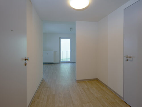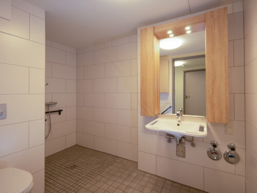 Unsere 1-Zimmer Wohnungen sind durch große Fenster hell und freundlich. Die seniorengerechte Ausstattung wurde zudem mit viel Liebe zum Detail ausgewählt. Der Grundriss zeigt einen Kochbereich, der sich in den Wohn- Schlafbereich integriert, vor. Das Bad ist mit barrierefreier Duschanlage, einem Waschtisch dessen integrierte Haltegriffe für zusätzlichen Komfort und Sicherheit sorgen und einem WC in seniorengerechter Höhe ausgestattet.
